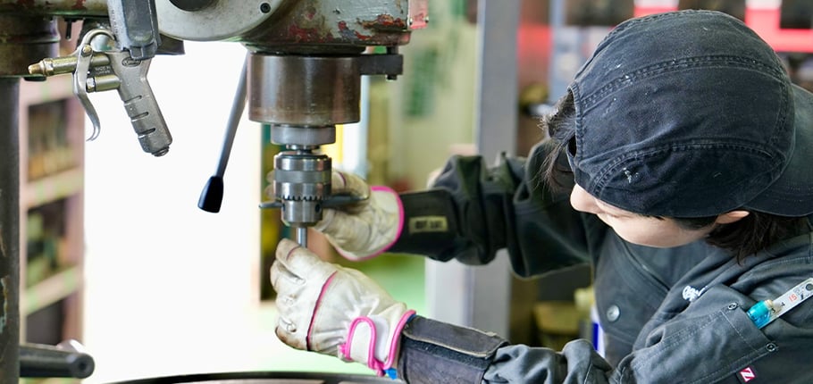 製缶部に所属しており、溶接、穴あけ(ドリルやボール盤使用)、のこ板を使った材料切断、部材の加工などを担当しています。